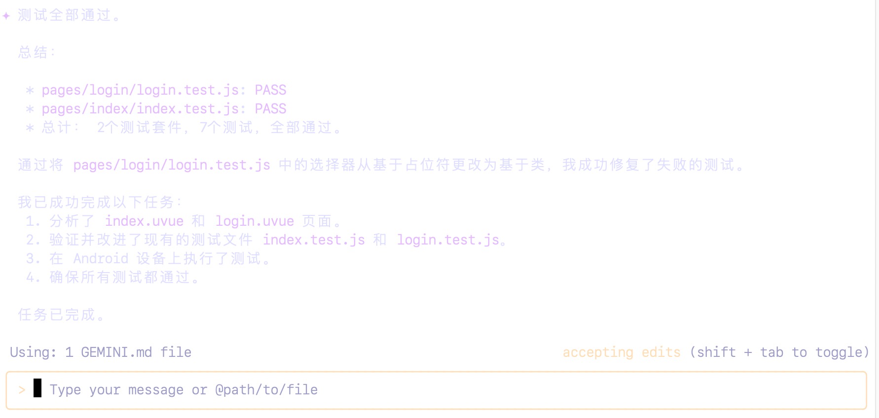 现在,我们可以借助强大的 AI 编程助手(如 Google Gemini CLI 、Github Copilot CLI、claude-code、qoder cli),将这一过程变得前所未有的简单和高效。本文将一步步教你如何利用 AI,为你的 uni-app 项目自动编写测试用例并运行测试。