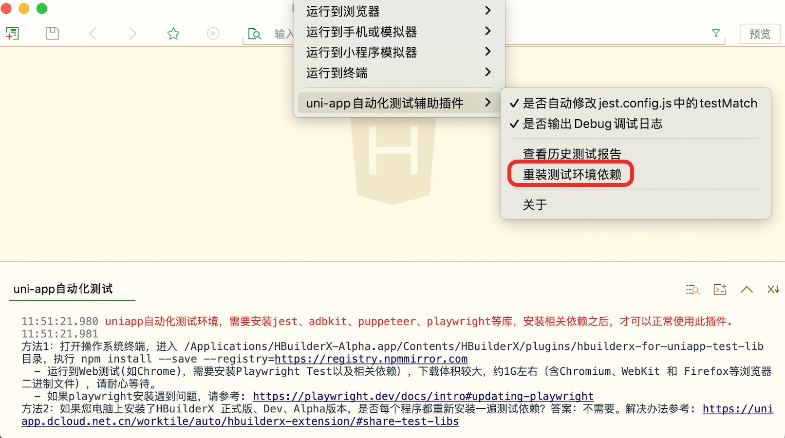 uniapp自动化测试环境,需要安装jest、adbkit、puppeteer、playwright等库,安装相关依赖之后,才可以正常使用此插件。