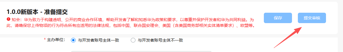 表单会默认填写部分元服务信息,请务必确定完成了 上架前置准备 要求内容。填写完成后选择 提交审核 按钮。