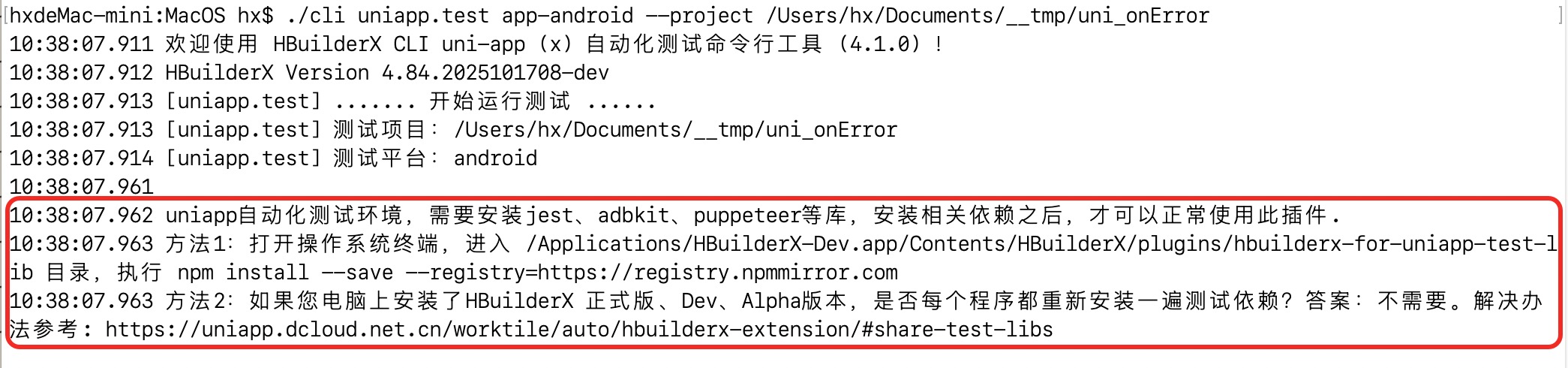插件市场 HBuilderX uni-app自动化测试插件 4.1.0版本起,支持被HBuilderX CLI调用了。